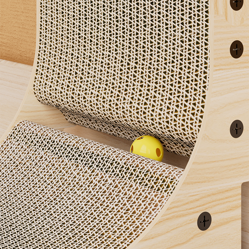 One of the most interesting features of this cat scratcher is the playball attachment, which provides an additional source of entertainment for your cat, increasing interaction and fun. My cat loves this feature and always has a great time playing with it.