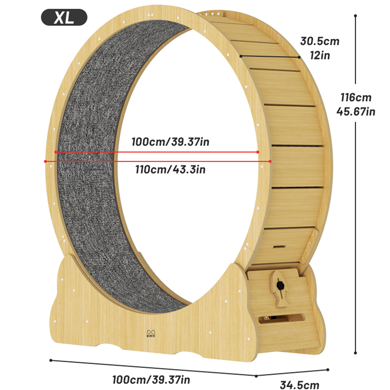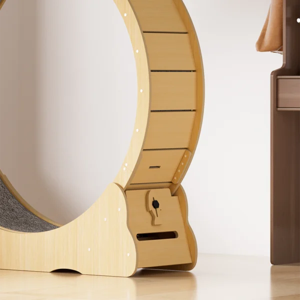 The replaceable, thickened scratching pad keeps your cat’s claws healthy while protecting your furniture. Additionally, this wheel can be customized with various add-ons (sold separately) like cat toys and catnip balls, transforming it into a full-fledged feline fitness center.