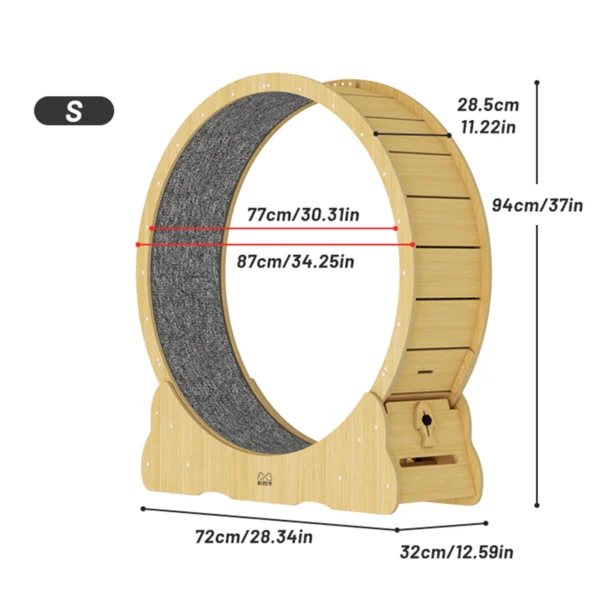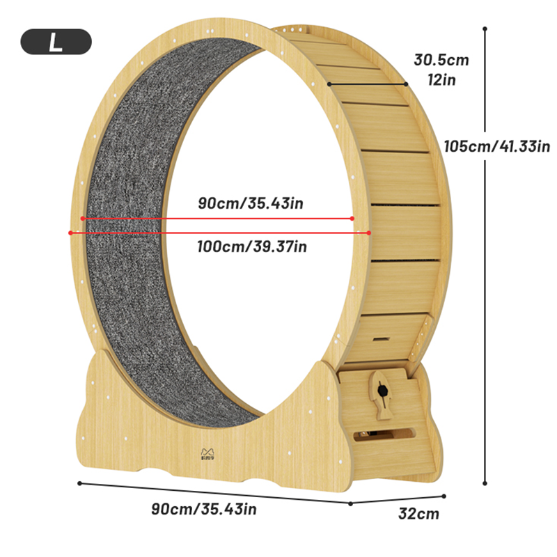 We know your cat’s safety is your top priority. That’s why the Classic Silent Cat Running Wheel with Locking Switch is constructed with high-quality, E1 grade 1/2″ (12mm) high-fiberboard and E0 grade 1/2″ (12mm) solid wood multi-layer for unmatched durability and stability. The secure locking mechanism keeps the wheel from rolling when not in use, while the narrow gap between the running wheels prevents tiny paws from getting caught.