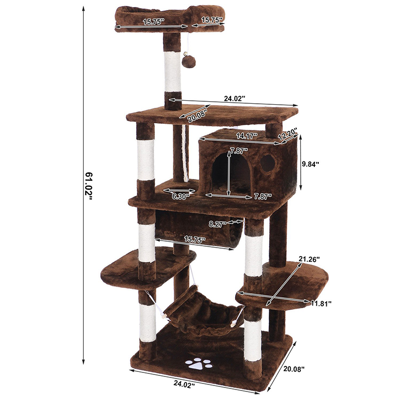 Provides Security and Comfort: The cozy condo and soft hammock offer safe havens for your cat to relax and feel secure, reducing stress and anxiety.