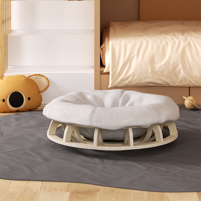 Unleash the Fun: The Whirlwind Wooden Cat & Dog Bed – Spinning Saucer Design